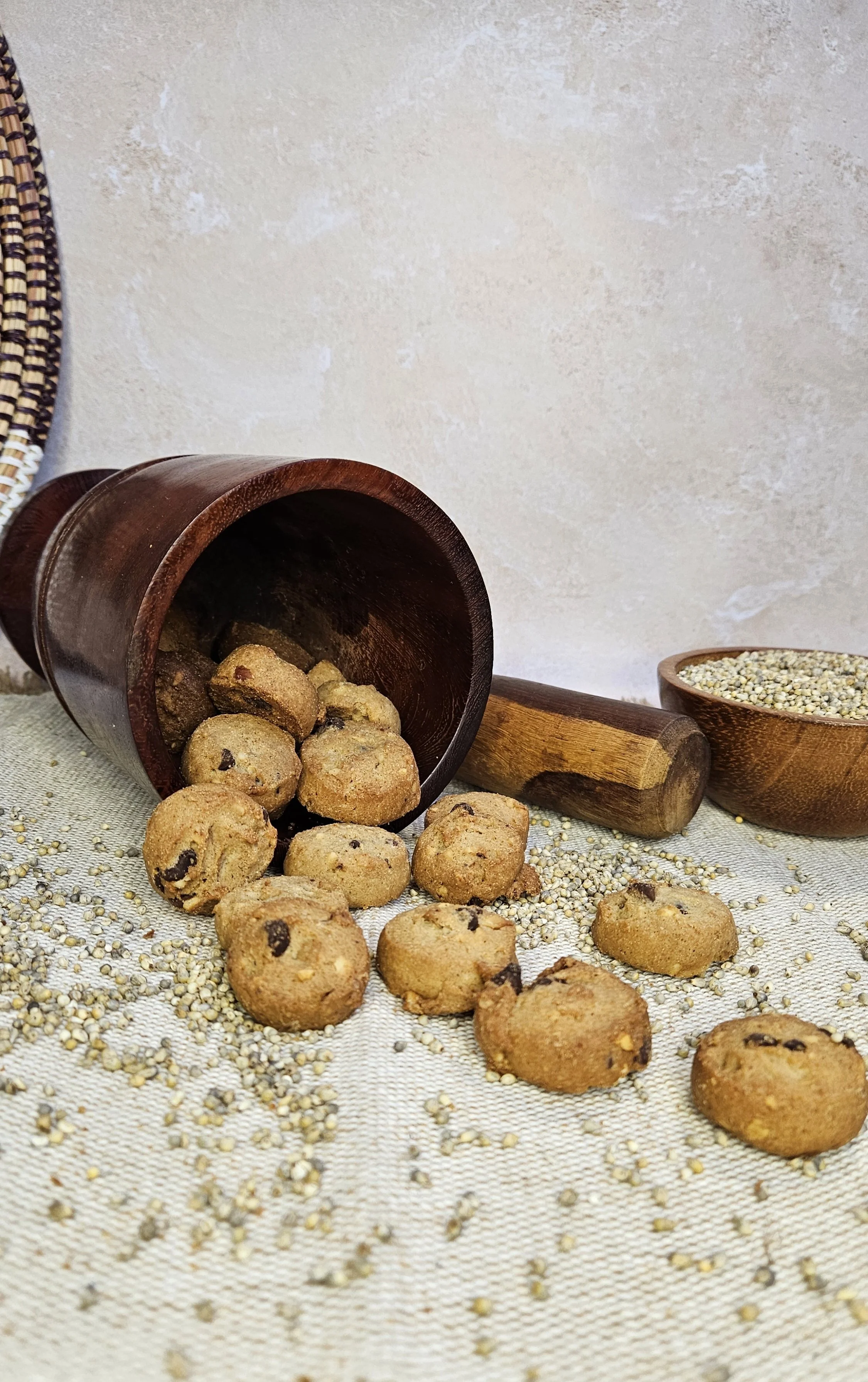 Nos cookies sont élaborés à base de farine de Mil, riche en protéines, en fibres, en antioxydants et en minéraux.